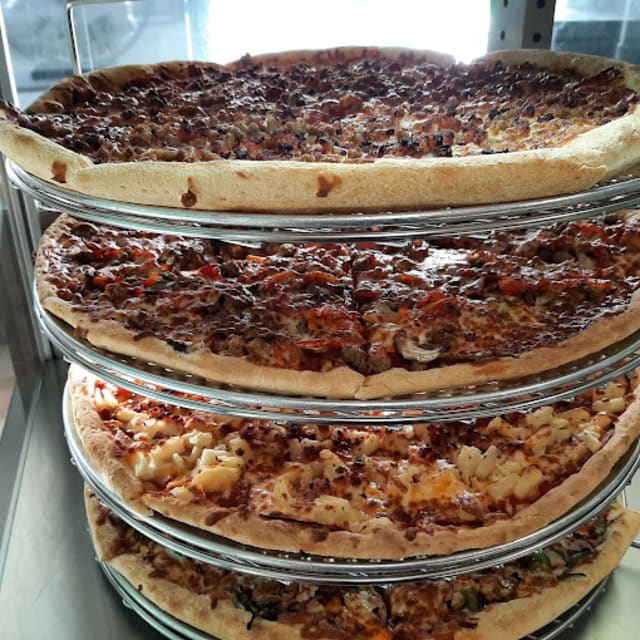Farmhouse Pizza and Donair offers fresh, handcrafted pizzas made from scratch with high-quality ingredients like fresh-cut vegetables, Canadian cheese, and house-made dough. The menu includes premium, specialty, and vegetarian pizzas, donairs, calzones, pastas, wings, salads, and desserts. Gluten-free and vegan options are available, and pizza slices are served for a quick bite from 11 am to 3 pm.