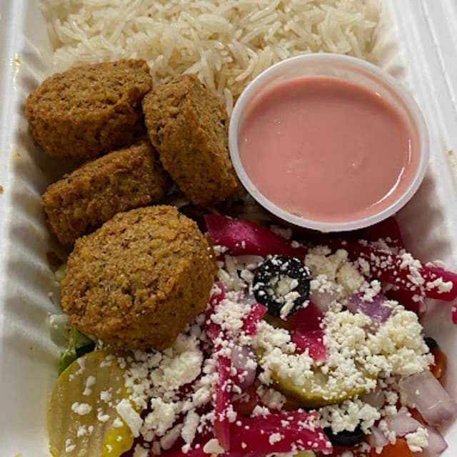 Habibi’s Donair offers a straightforward dining experience where quality and flavour shine. The menu highlights their expertly crafted donairs, generously stuffed with fresh, crunchy vegetables and tender, seasoned fillings. The falafel donair stands out, wrapped in a soft pita packed so full it’s almost impossible to close. For those seeking a little extra indulgence, the fries with honey dip are a unique and delicious side. If you’re craving a classic donair or exploring their platters, Habibi’s consistently delivers on taste and value.