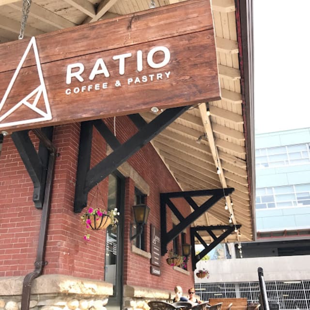 Ratio Coffee & Restaurant serves brunch daily until 3 pm, featuring coffee from Drumroaster Coffee and JagaSilk Tea. It has Friday donuts, freshly baked in-house and offers a variety of pastries throughout the week and serves dinner Wednesday to Saturday.
