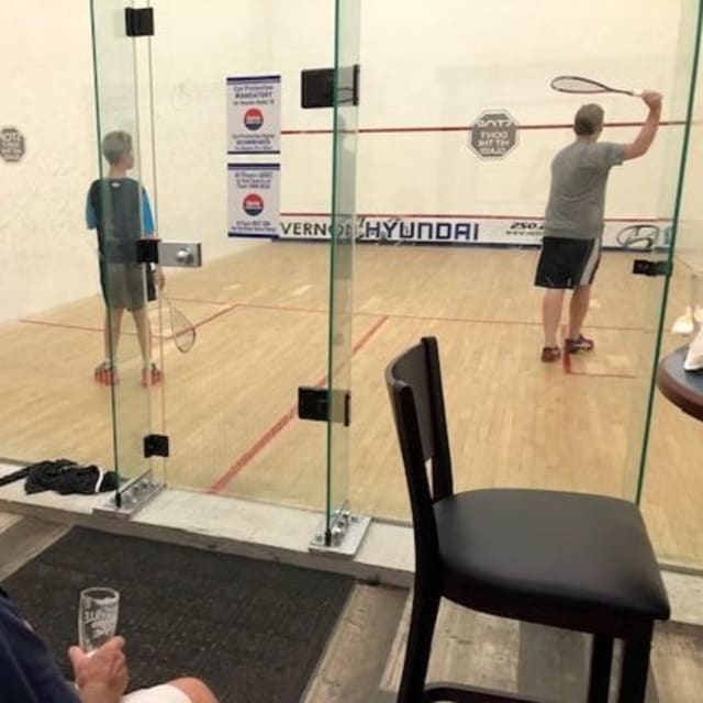 The Vernon Squash Club, located at The Roster Sports Club Bar and Grill on 2319 53rd Ave in Vernon, BC, offers four squash courts with spectator seating, year-round access, and a range of programs. Members and non-members can participate in leagues, clinics, junior programs, and private lessons led by Club Pro Pete Trafford. Facilities also include exercise equipment, updated change rooms, and access to additional sports like racquetball and golf simulators.